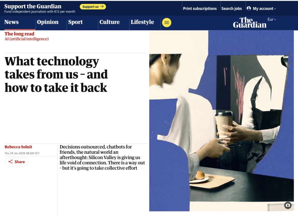 Rebecca Solnit hat einen langen Essay im Guardian gegen die Tyrannei der Technologie geschrieben – und sie verwendet darin in sehr schöne Bild, das ich so ähnlich auch in unserem Buch „Wie KI dein Leben besser macht“ verwende. Es steckt in dem Bild das Lob für den Weg und nicht nur die Erreichung des Ziels: denn in der Abgrenzung von KI geht es um den Prozess und nicht nur um das Produkt.