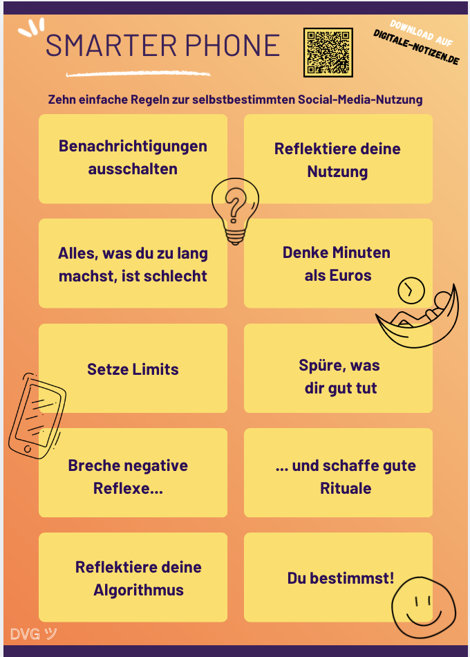 Am Ende geht es beim gesunden Umgang mit Social-Media um die Frage, welche Ritualen du folgst. Sind es die Reflexe, die die Apps z.B. mit Benachrichtigungen fördern oder sind es Rituale, die. du dir selbst setzt? Wenn es dir gelingt, eigene Rituale einzuführen, gelangst du selbst hinter den Ball und bestimmst nach deinen Regeln: „Ich schaue jeden Mittag für 20 Minuten Tiktoks an“, kann z.B. ein guter Ansatz sein.