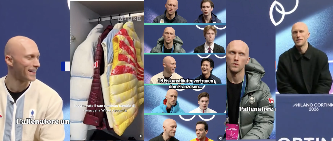 Benoit Richaud ist in den letzten Tagen in zahlreichen Videos in meiner Timeline aufgetaucht. Denn Benoit Richaud hat 13 unterschiedliche Jacken, die er bei den Olympischen Spielen in Mailand anziehen muss. Benoit Richaud ist Trainer von 16 Eiskunst-Läuferinnen und -Läufern aus 13 Nationen – und er will sie jeweils in den passenden Nationalfarben unterstützen.